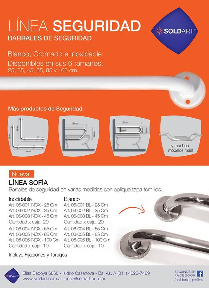 En Sanit-Gas Bernal incorporamos la línea de seguridad para baños Soldart. Una empresa líder con los más altos standar de calidad. Encontrá la linea completa de productos:Barrales de seguridad, Barral 135° – 90° – Barral piso pared – Barral pared pared – Barral de acceso rebatible – Barral de acceso fijo con porta rollo – Asiento para bañera.. Consulta por más productos.
